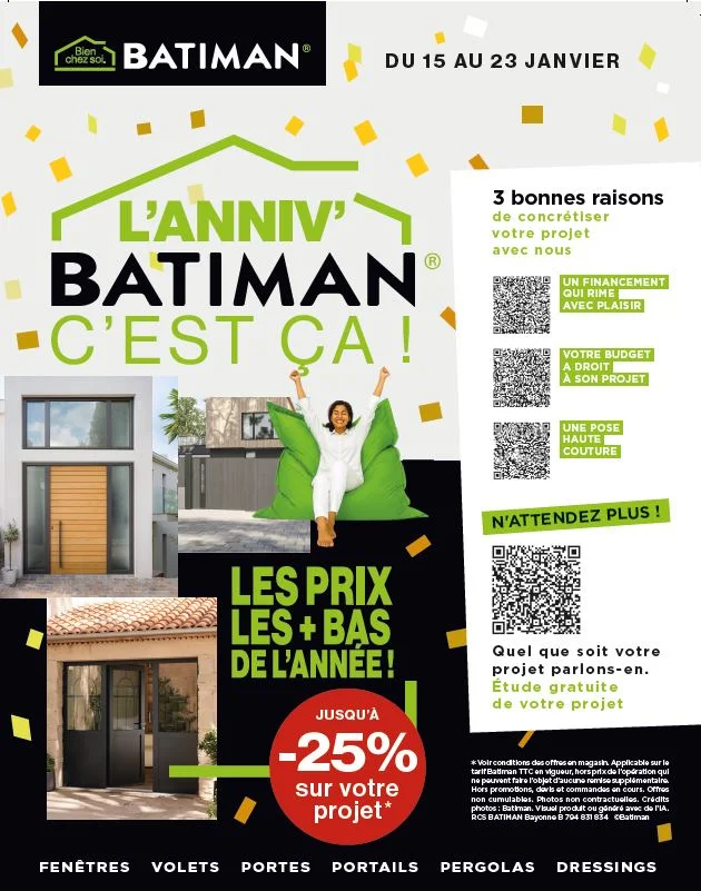 🎉 Batiman fête son anniversaire ! 🎉 C'est l'occasion parfaite pour nous, chez BECART, de vous exprimer notre gratitude. En tant que spécialistes de la menuiserie à Armentières, nous sommes fiers de vous accompagner dans vos projets de fermetures, qu'il s'agisse de fenêtres, portes, ou autres installations sur mesure.