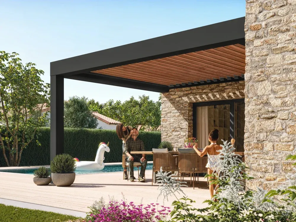 Chez BECART, expert en menuiserie et fermetures près d'Armentières, nous sommes fiers de vous présenter la pergola bioclimatique EGUSKI de la gamme Excellence chez BATIMAN. Cette pergola innovante vous permet de profiter de votre espace extérieur en toute saison grâce à son toit bioclimatique et ses lames orientables. Avec son style contemporain, elle s'intègre parfaitement à tout environnement, que ce soit pour des projets neufs ou de rénovation.