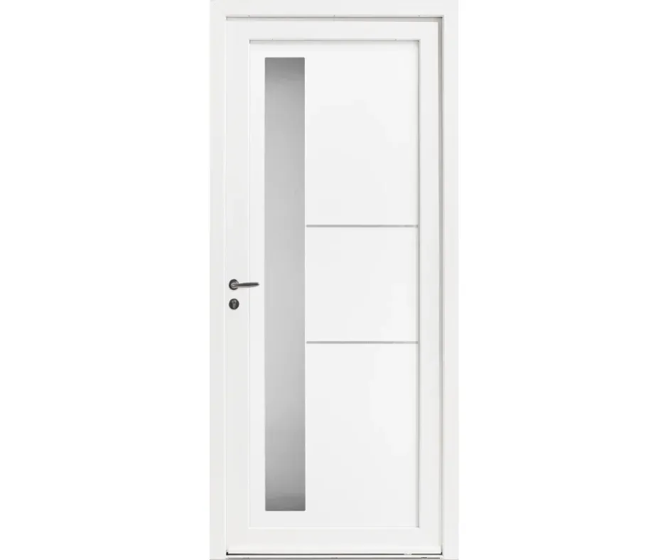 La porte ARP-1 se démarque par son épaisseur de 28 mm et son vitrage plein, garantissant une luminosité optimale à votre intérieur. Sa finition spécifique, en porte pleine rainurée avec un décor ton inox brossé sur la face extérieure, ajoute une dimension esthétique supplémentaire. Pour répondre à vos besoins spécifiques, BECART vous offre la possibilité de personnaliser votre porte avec divers habillages extérieurs, des élargisseurs pour dormant, ou encore des moulures à clipser. Ces options permettent d'adapter parfaitement la porte à votre style et à l'architecture de votre maison.